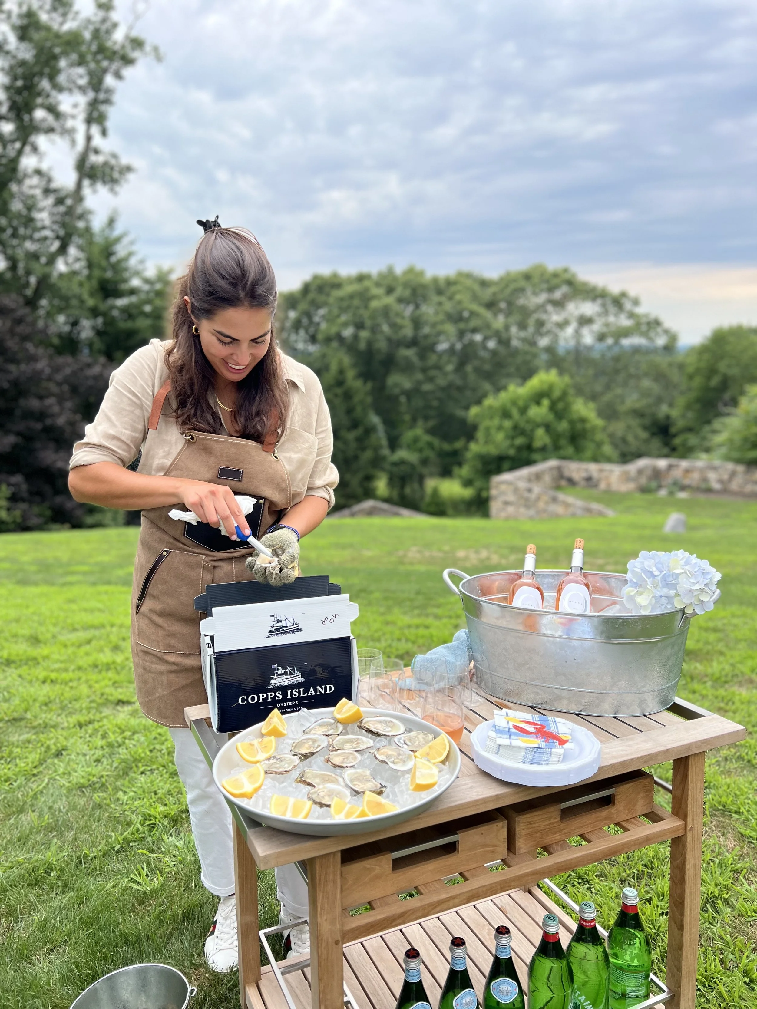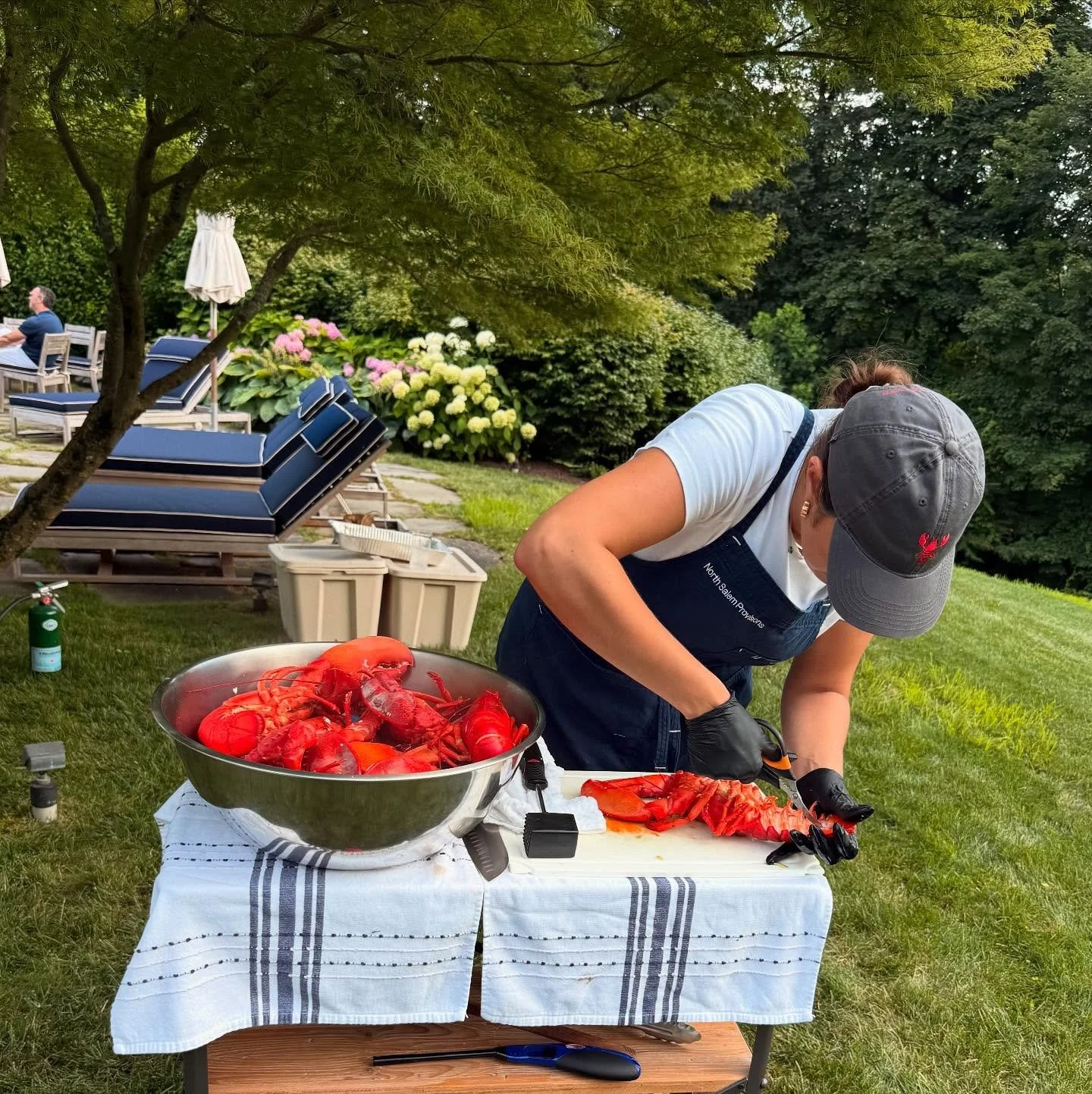 In the summer we offer a full-service lobster boil catering experience, we will bring everything from the tables, chairs, table scaping, lobster boil preparation, and dessert to set up in your backyard. We also offer an oyster happy hour before dinner. Enjoy a delicious and authentic lobster boil this summer!